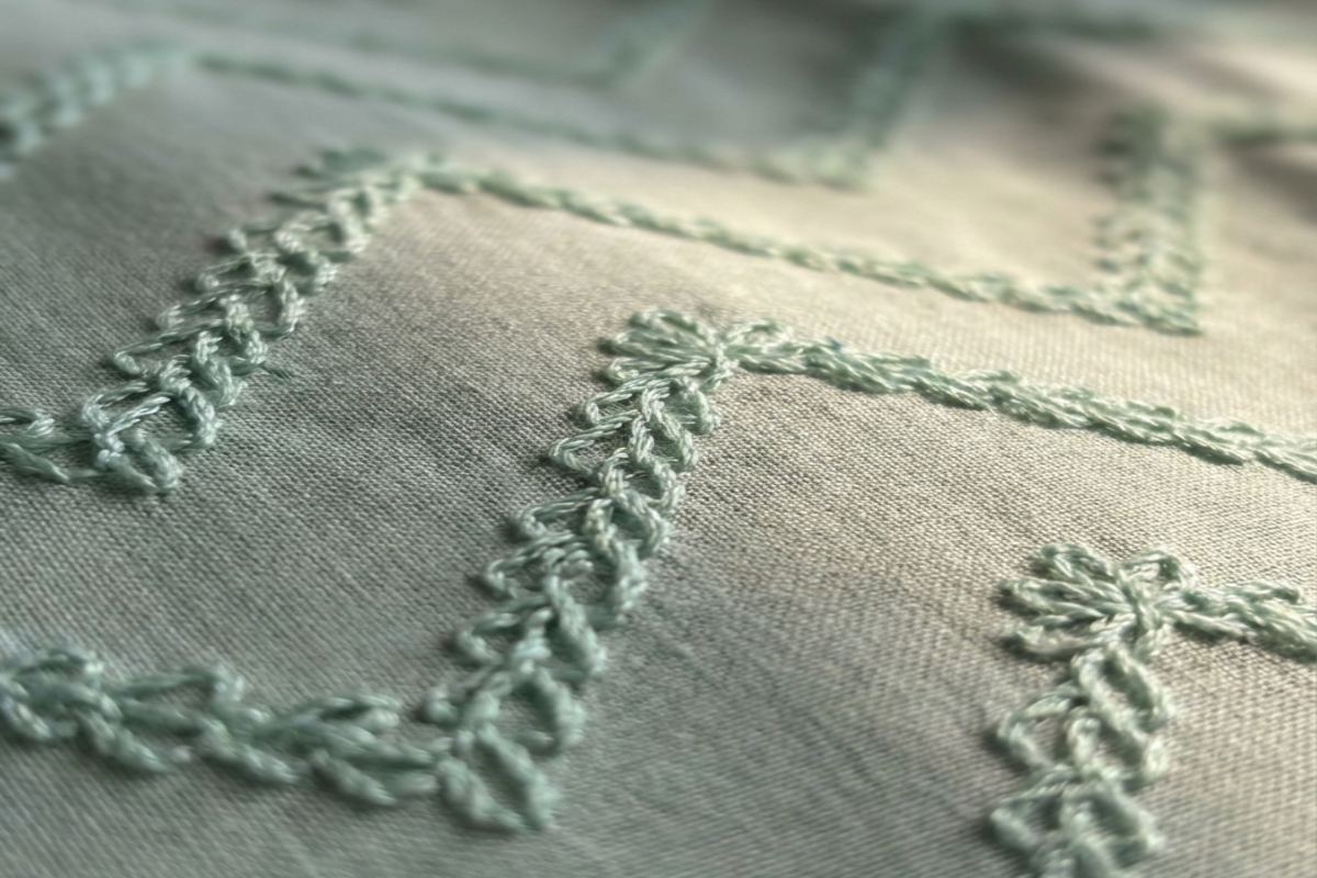 Aari is a traditional embroidery technique done by hand using a fine hooked needle. The craft allows for precise, flowing motifs created through controlled chain stitches. Often subtle and tonal, Aari work adds depth without heaviness. It is meant to be felt up close, not seen from a distance. When used with restraint, it enhances a garment without overwhelming it, allowing craftsmanship to speak quietly through detail.